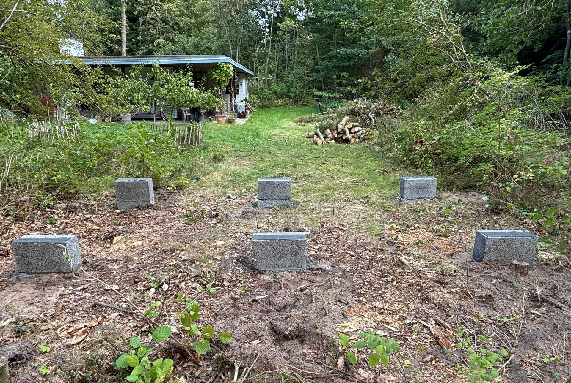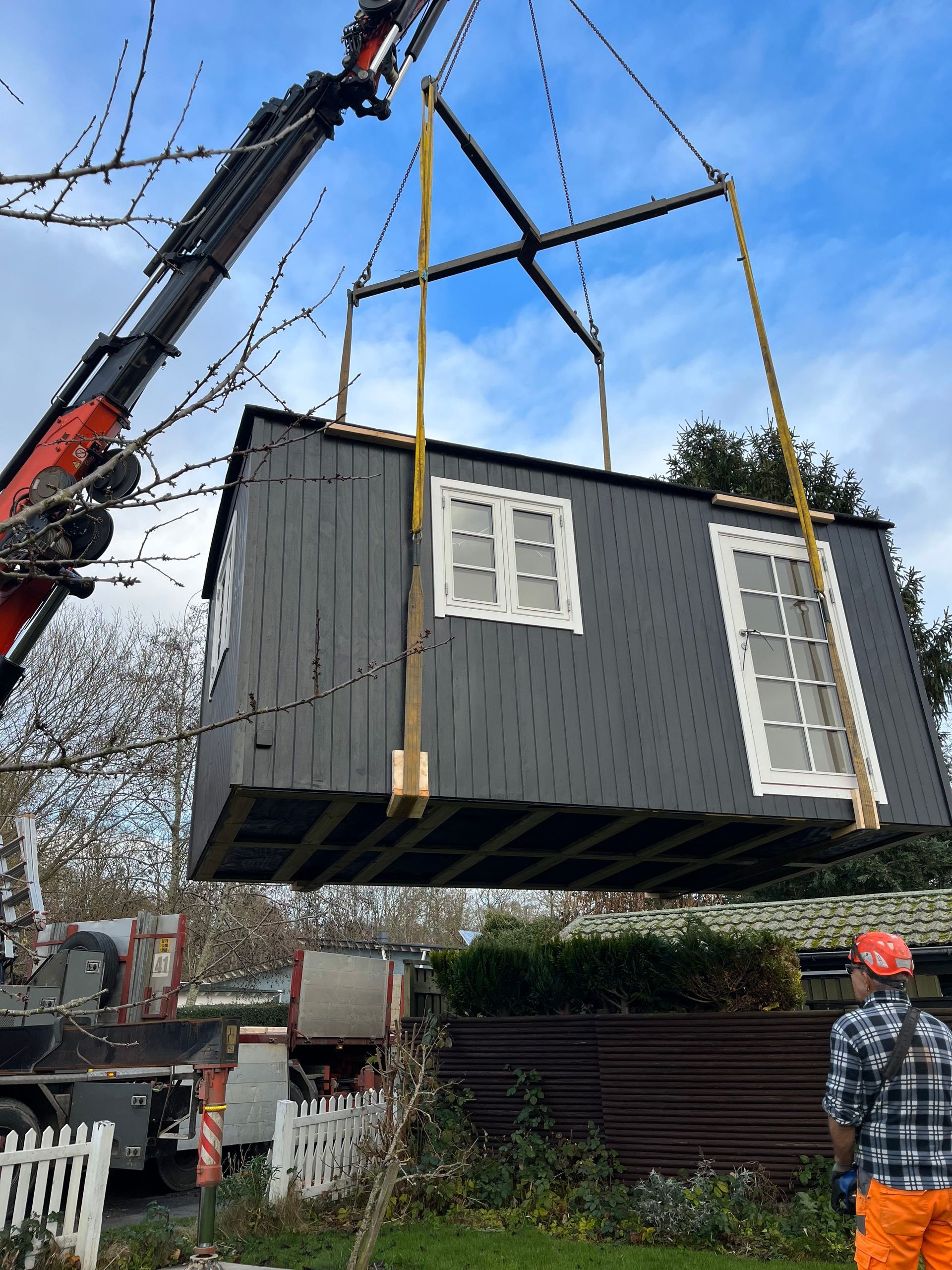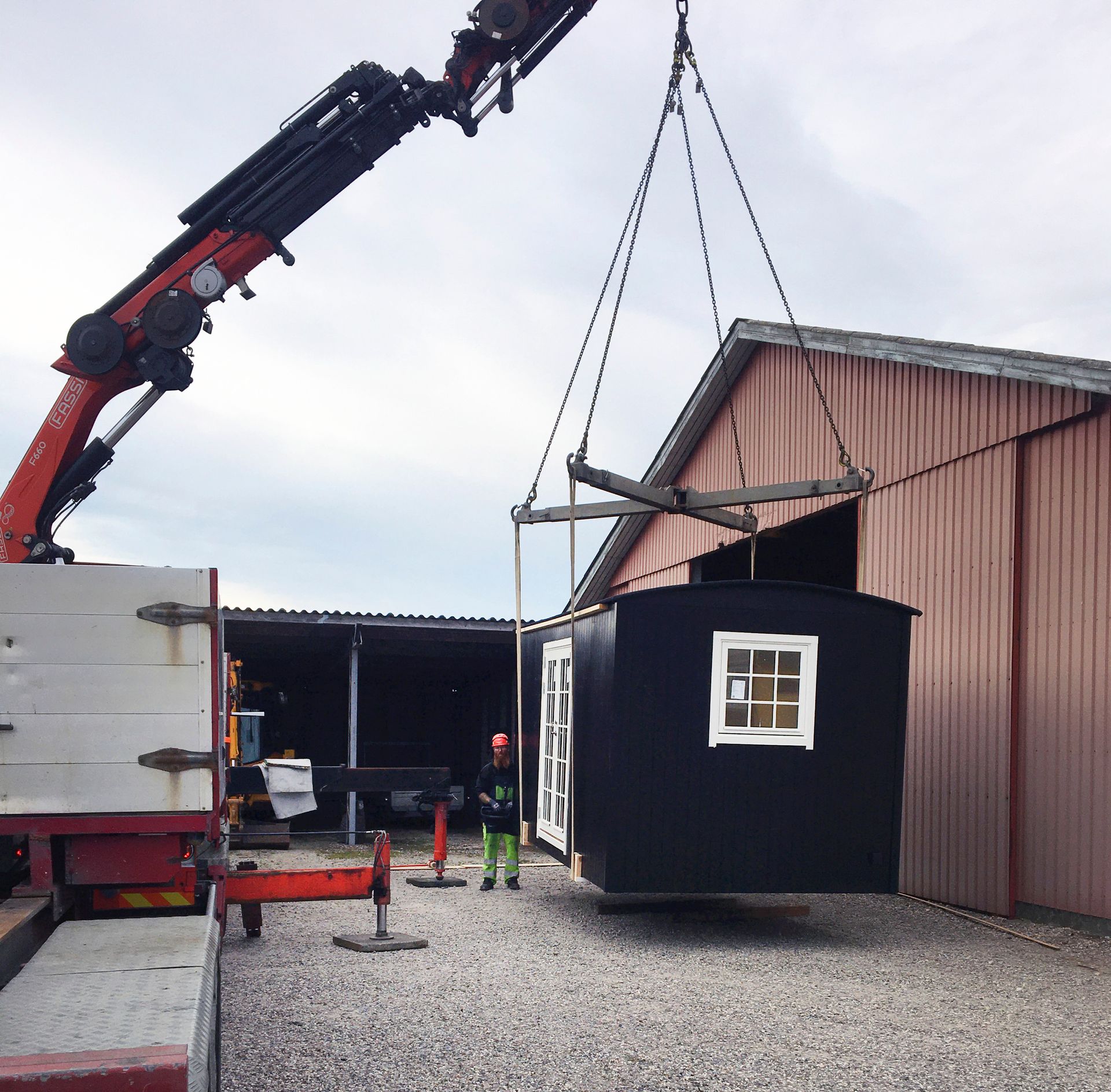 Lille kranvogn hejser ca. 15 meter ind på grund